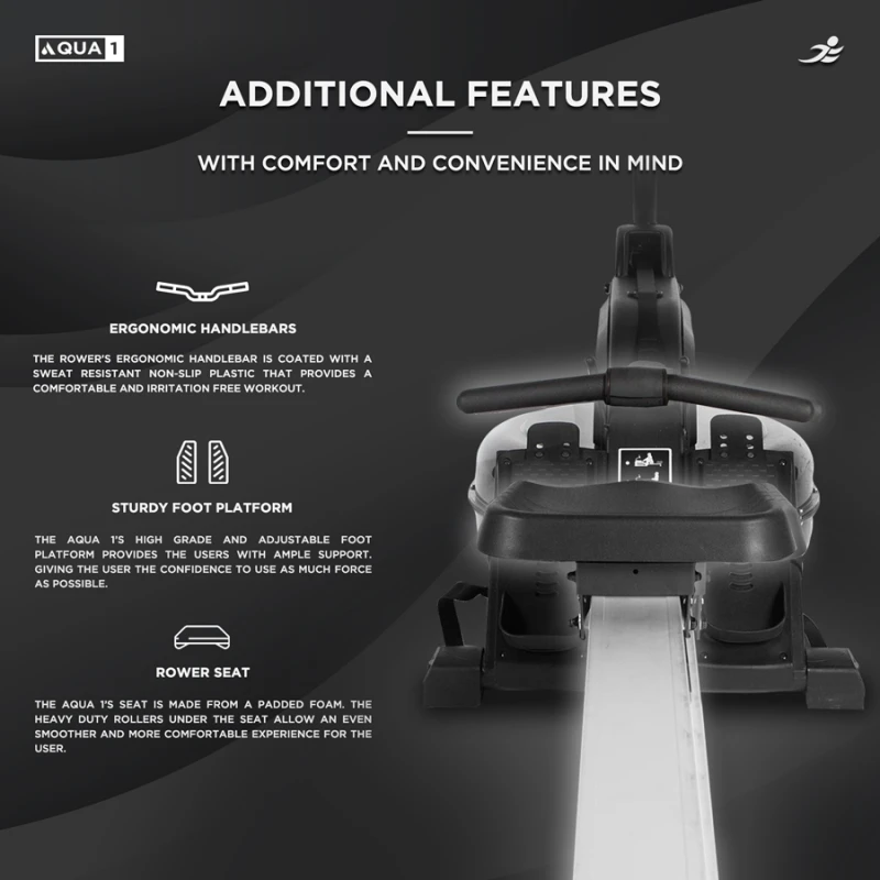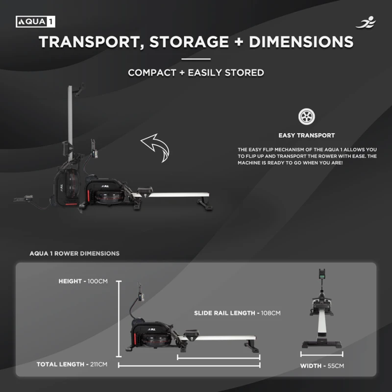 Elevate your fitness routine with the JLL Aqua 1 Rowing Machine, offering the perfect blend of innovative resistance technology, user-friendly features, and space-efficient design. Experience the unique dual resistance system and comprehensive monitoring that set the Aqua 1 apart, and enjoy a premium rowing experience in the comfort of your home.