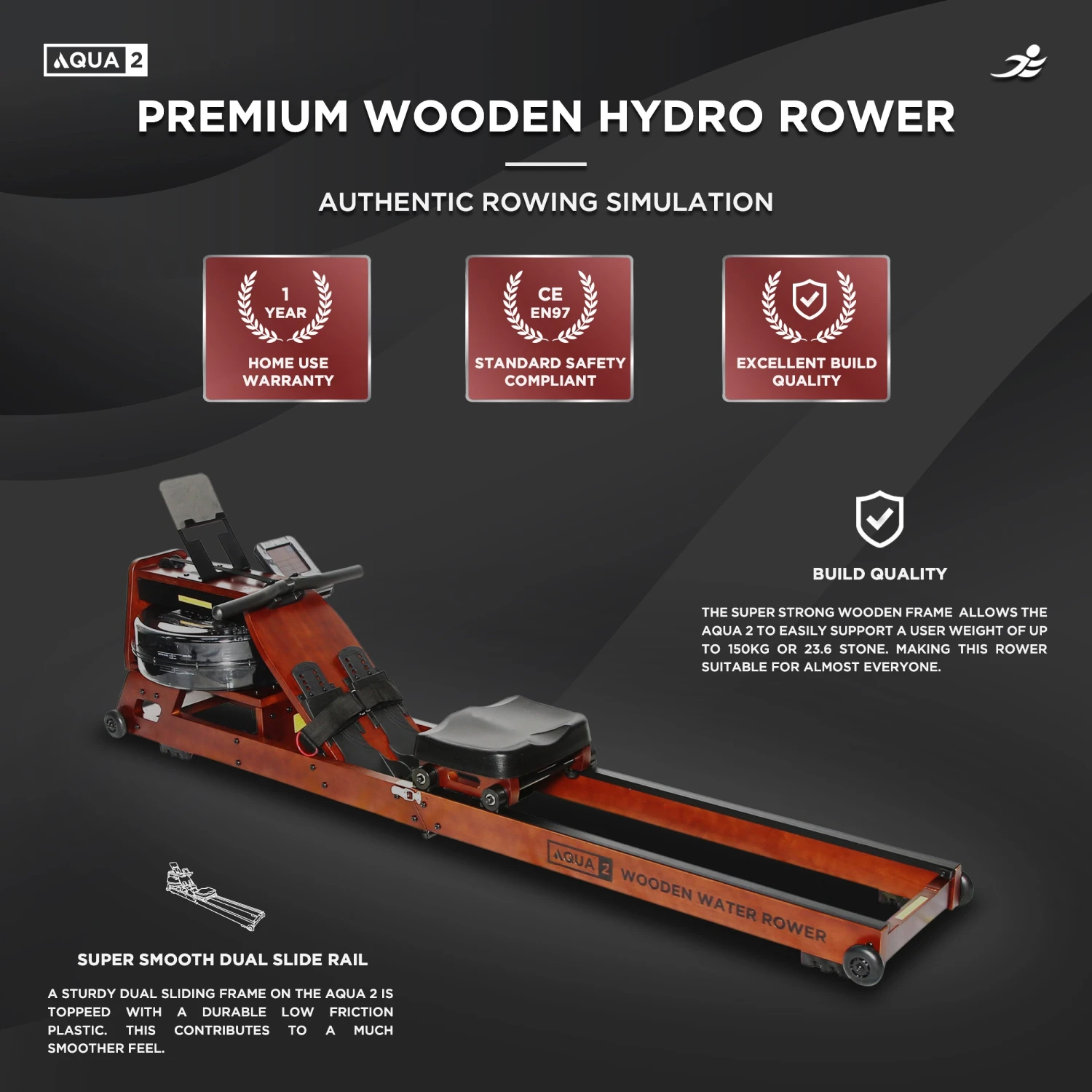 Constructed from durable wood, this rower exudes elegance and strength, providing a stable platform for your exercise routine. The hydro resistance system offers a smooth and natural rowing experience, mimicking the feel of rowing on the water while adjusting to your desired intensity.