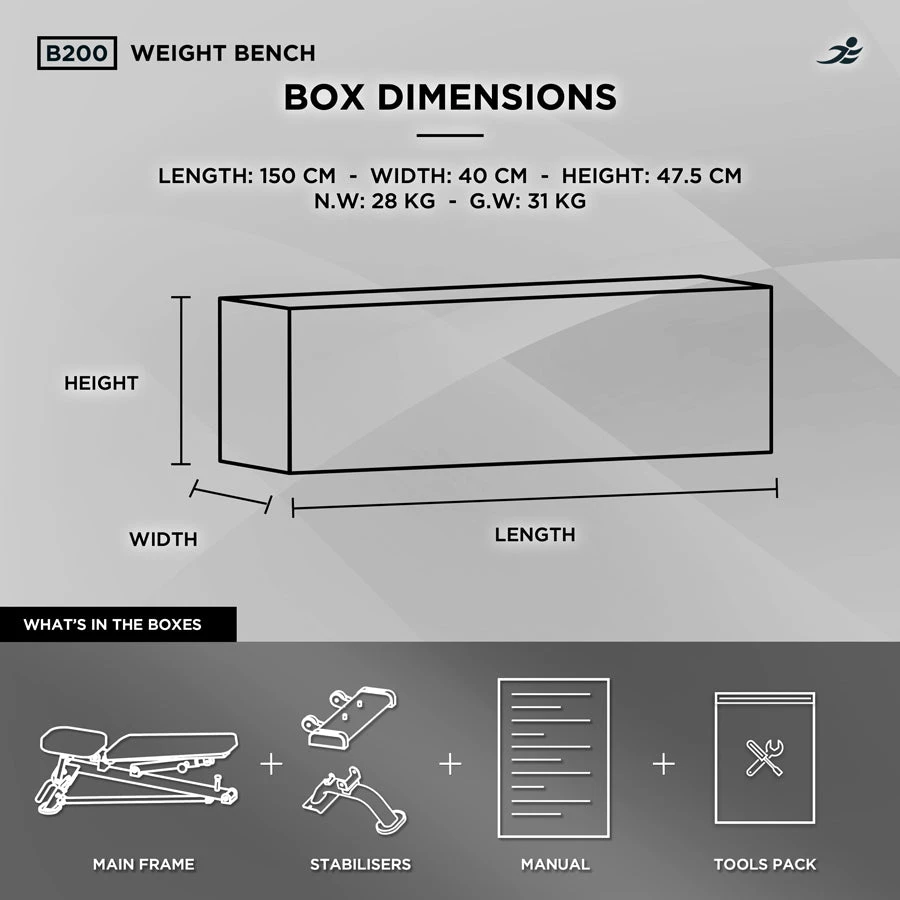 The JLL B200 Adjustable Incline Weight Bench is ideal for a wide variety of workouts both with additional equipment and without.