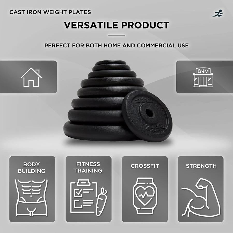 The JLL Cast Iron Weight Plates are ideal for targeting every muscle group through various exercises such as squats, lunges, dead-lifts & bench/chest press exercises.