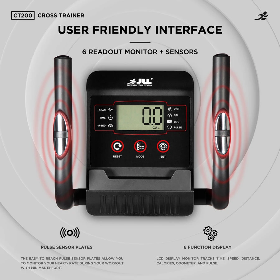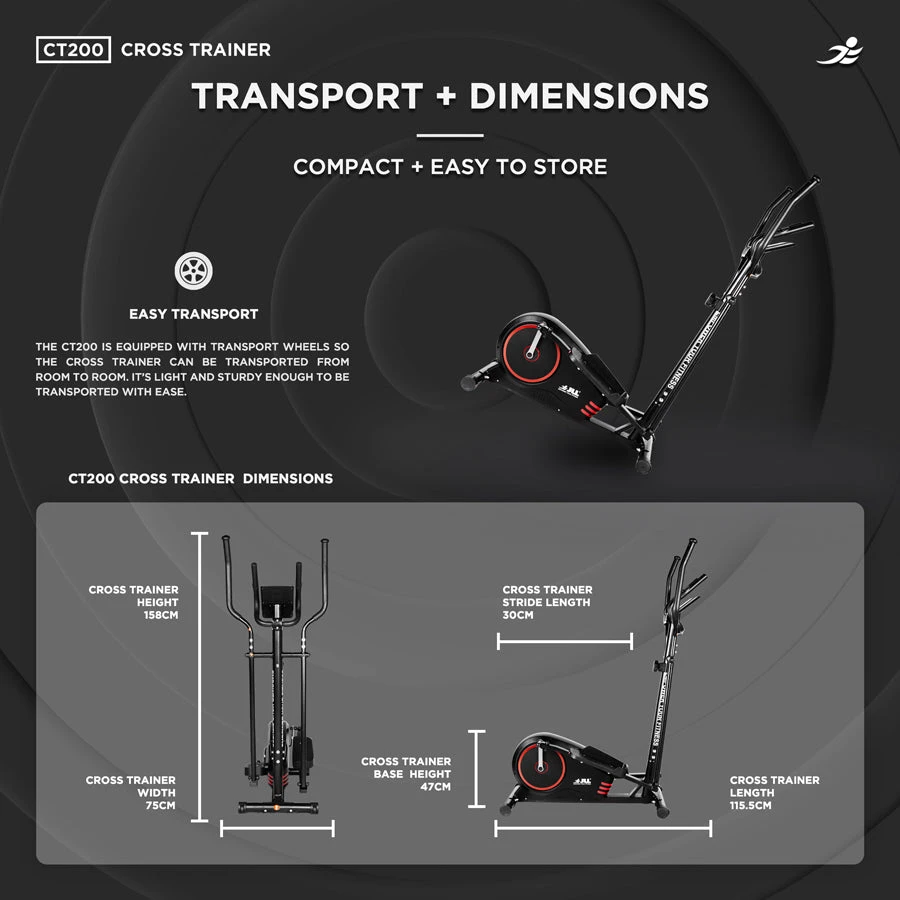 Kickstart your fitness journey with the JLL CT200 Cross Trainer, an entry-level machine designed to bring the benefits of a full-body workout into the comfort of your home. Perfect for beginners, the CT200 combines simplicity, functionality, and durability, making it an ideal choice for those new to cross training.
