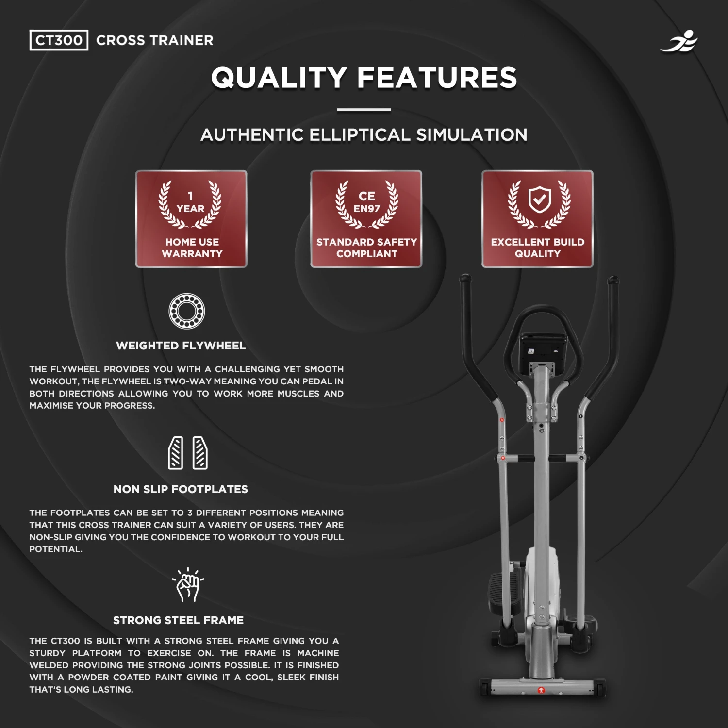 Full-Body Workout: The CT300 delivers a full-body workout, engaging both upper and lower body muscles. This comprehensive approach not only enhances cardiovascular health but also improves muscle tone and overall fitness, helping you achieve a balanced and effective workout.