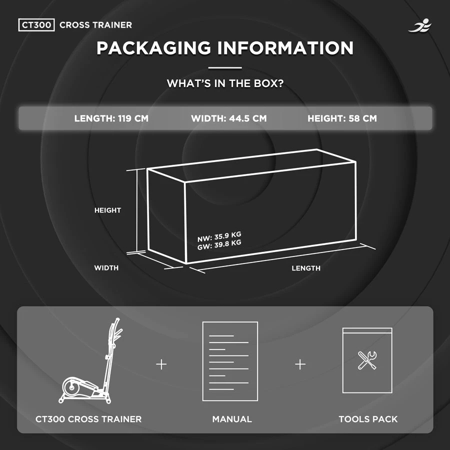 Max User Weight of 100kg: Built to support users up to 100kg, the JLL CT300 provides a stable and secure platform for your workouts. Its robust construction guarantees durability and long-lasting performance, making it a reliable addition to your home gym.