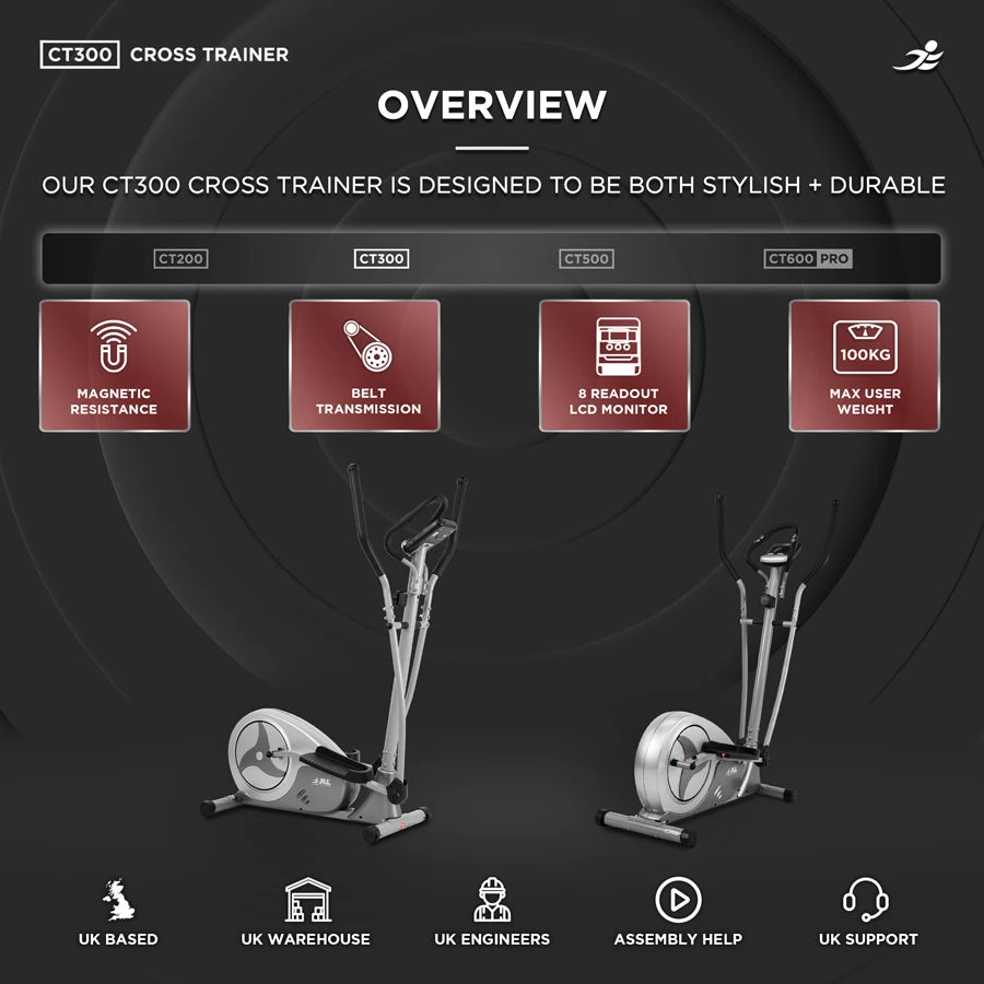 Experience the ultimate in home fitness with the JLL CT300 Cross Trainer. Combining advanced features with ease of use, this cross trainer is designed to help you achieve your fitness goals from the comfort of your home. Invest in your health and well-being with the JLL CT300, and enjoy a versatile and effective workout solution that meets all your needs.