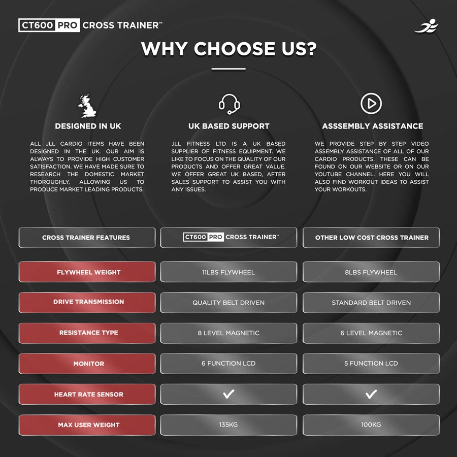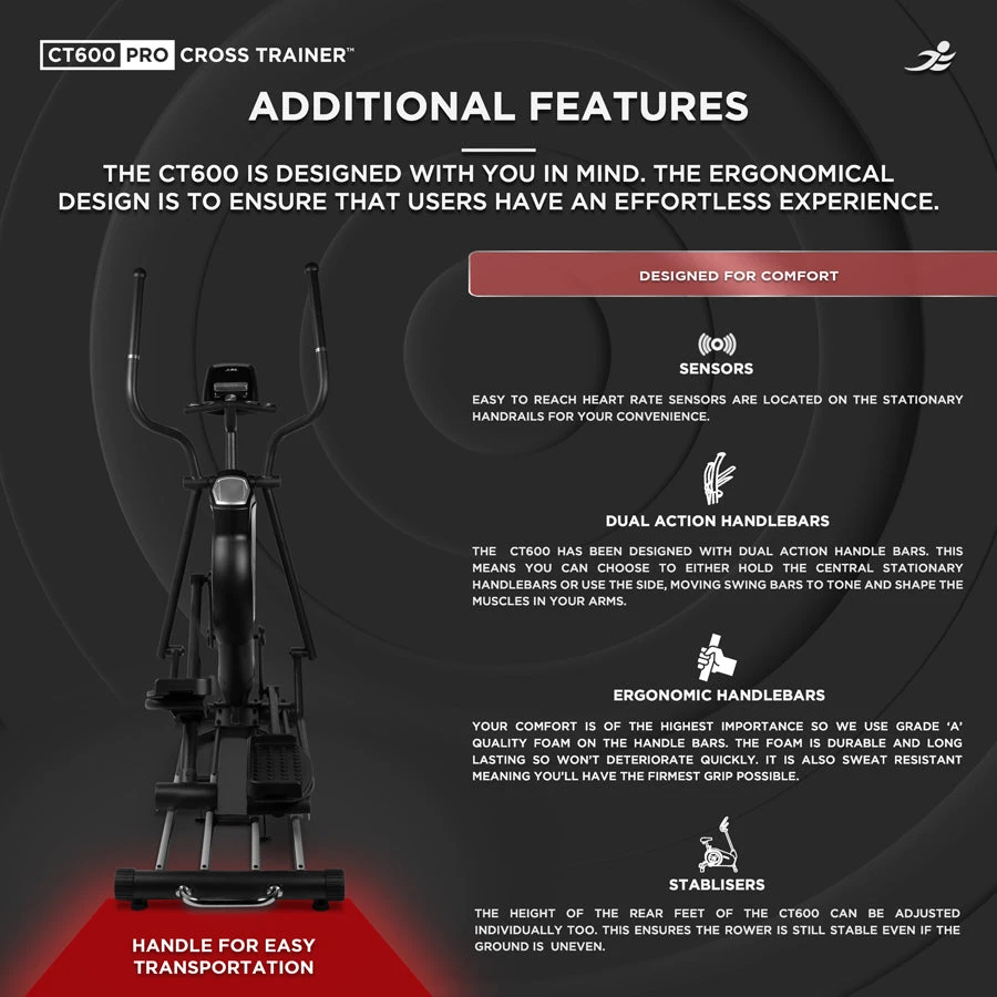 Elevate your home workout routine with the JLL CT600 Pro Cross Trainer, a high-end fitness machine designed for those who demand the best. Combining cutting-edge technology with superior build quality, the CT600 Pro offers a premium exercise experience that transforms your home into a personal gym.