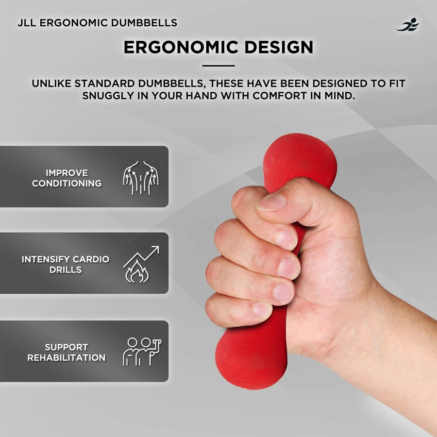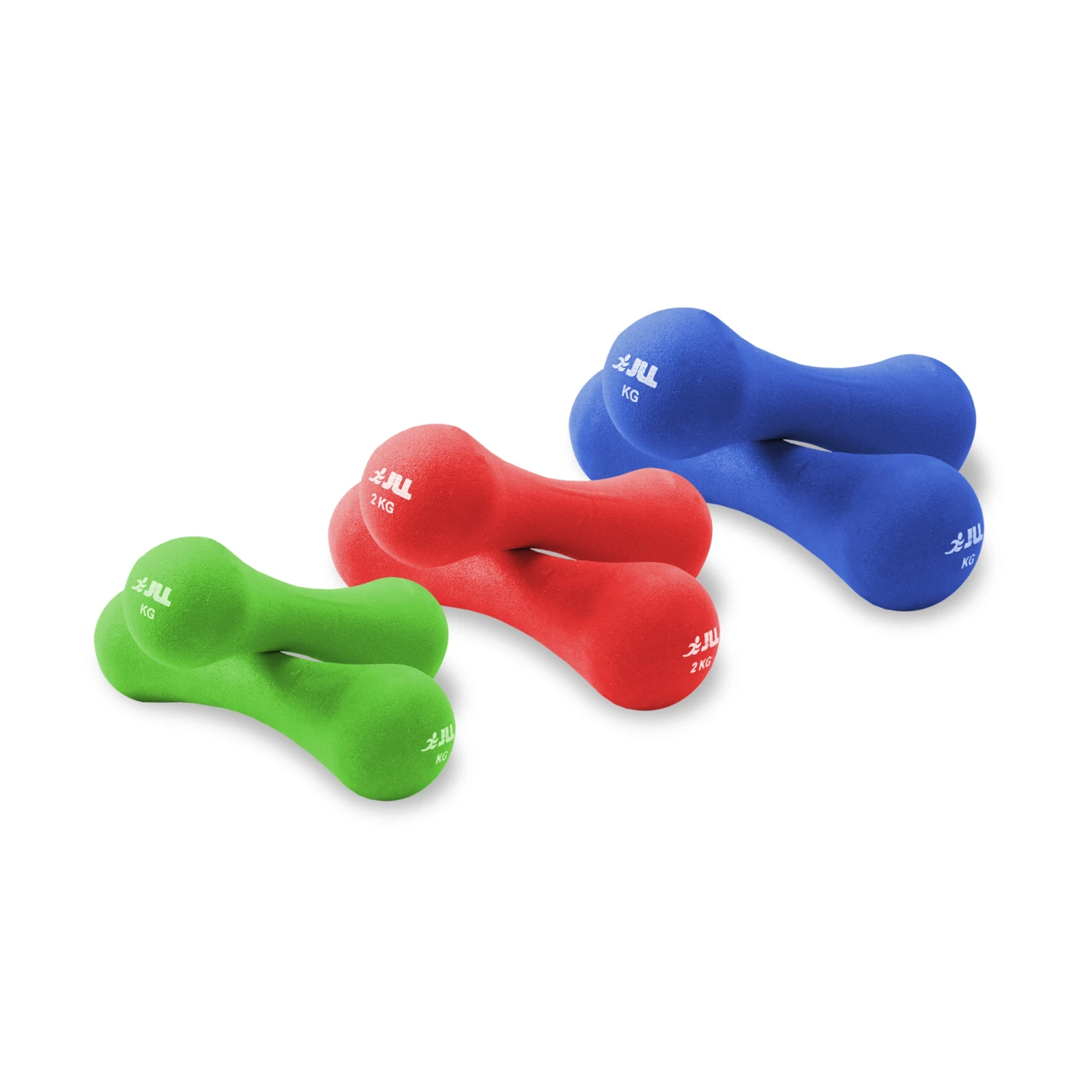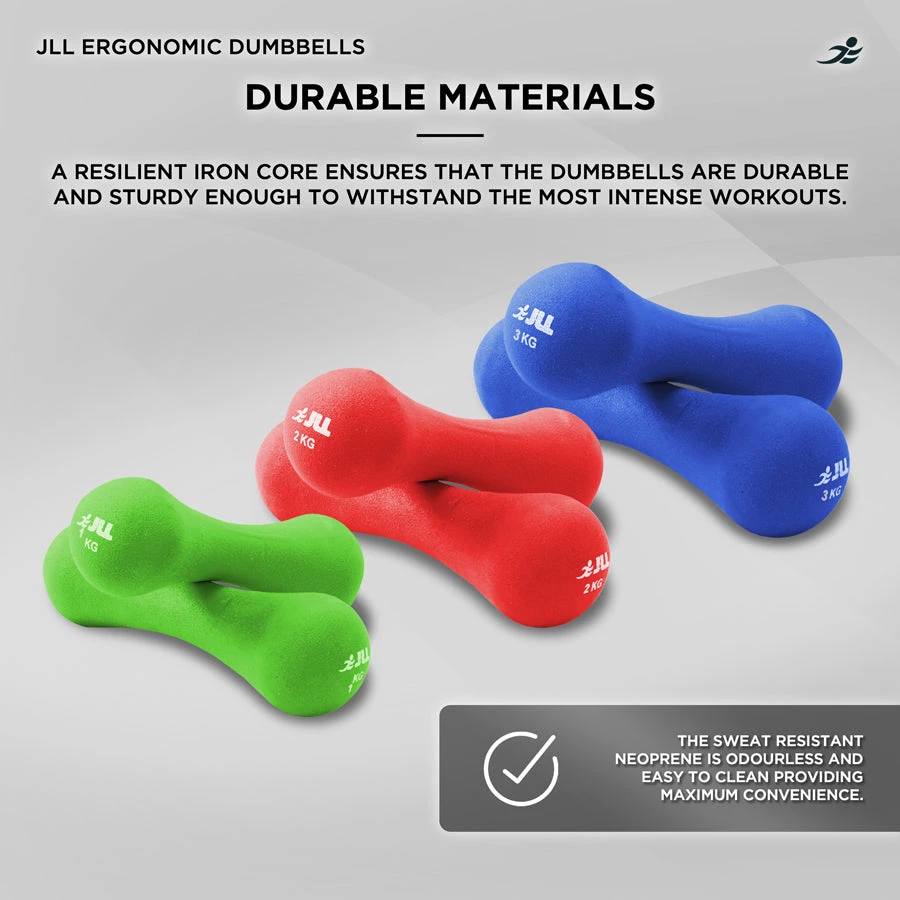 JLL Ergonomic Neoprene Dumbbells Set is a multipurpose exercise toolkit. It includes 1 kg, 2 kg and 3 kg pairs of dumbbells in three colours. Neoprene Dumbbells have been professionally designed to provide a comfortable grip, which makes dumbbell exercises easier and safer to perform.