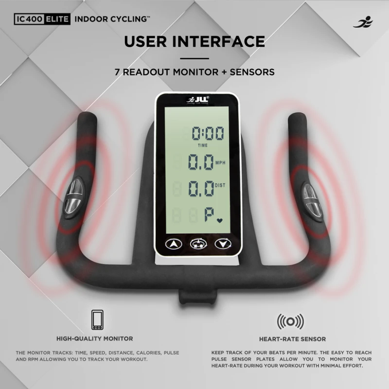 Introducing the JLL IC400 Elite Indoor Cycling Bike, the pinnacle of performance and durability for your home workout regimen. Featuring a powerful 20kg flywheel, the IC400 Elite delivers a smooth, realistic cycling experience that challenges and motivates you at every level. The advanced 7-function monitor allows you to precisely track your time, speed, distance, calories burned, pulse, and RPM, along with a target heart rate function. Designed to accommodate a maximum user weight of 150kg, this bike ensures superior stability and safety. With its robust construction, customisable resistance levels, and ergonomic design, the JLL IC400 Elite is the ultimate choice for serious cyclists looking to bring their training indoors. Elevate your fitness journey with the reliability and sophistication of the JLL IC400 Elite.