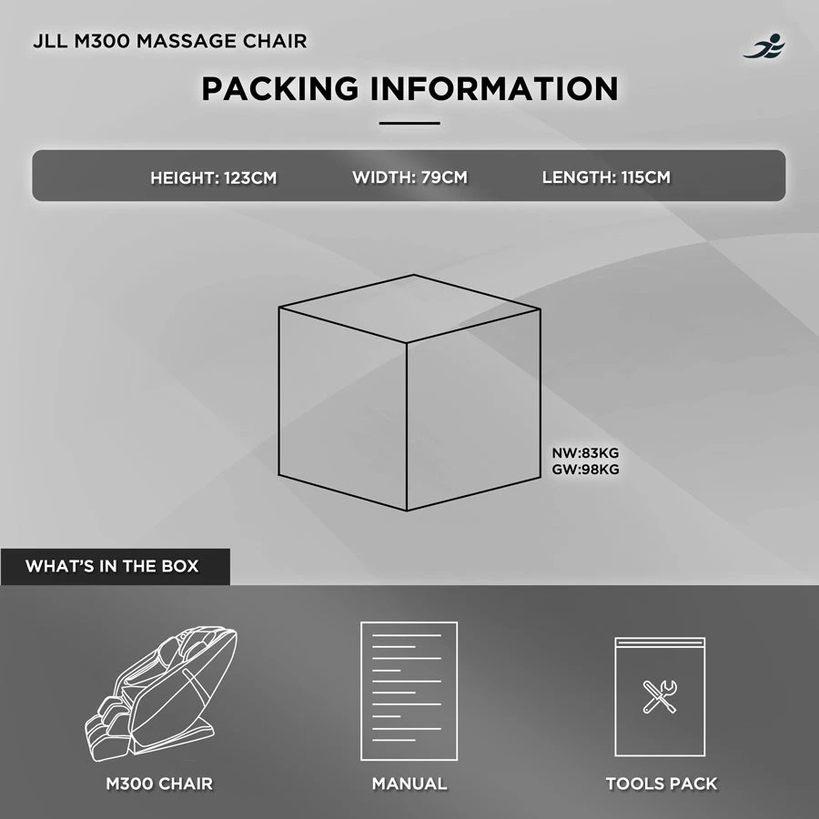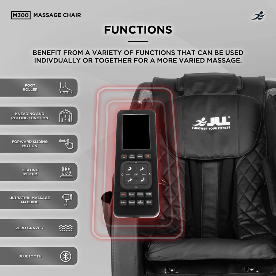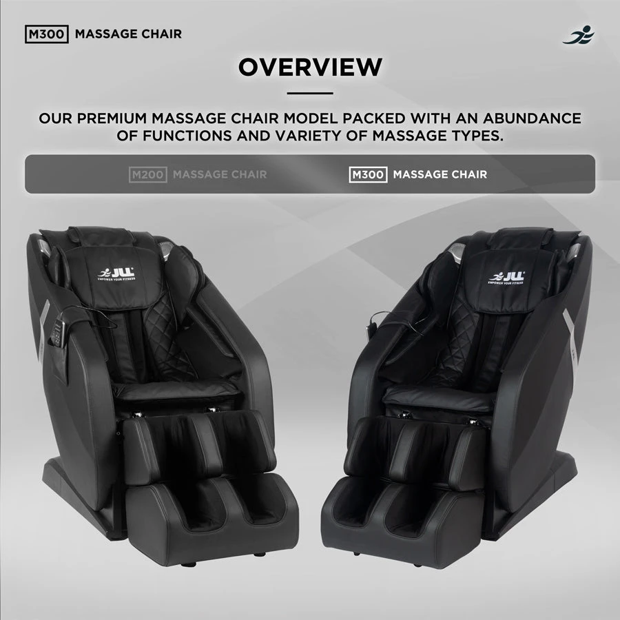 Unlike the M200 model, the M300 also has the ability to create a zero gravity sensation. This feature places your body into a highly reclined position, the same position astronauts assume during blast off. In this reclined state stress is taken off your spine and elevates your feet and legs higher than that of your heart all the while the rollers within the chair massage your entire body.