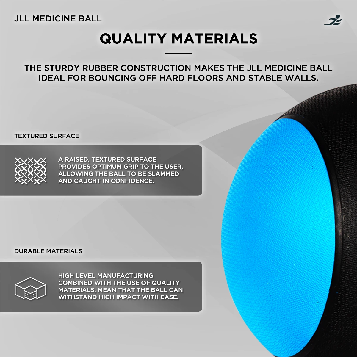 The JLL Medicine Ball is made from a high quality, heavy duty rubber material meaning it is long lasting and durable against the most intense of exercises.