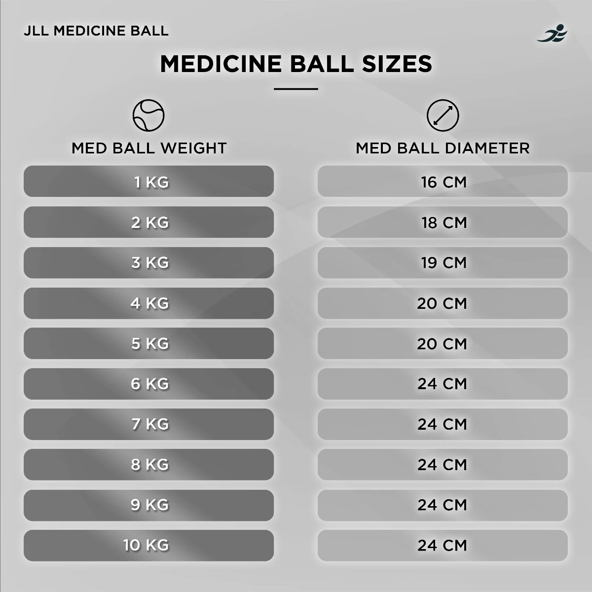 The JLL Medicine Ball offer whole body workouts like never before. Designed to be slammed off of the floor, these balls work muscles in the legs, arms and upper body.