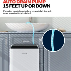 Honeywell TPFIT50APWK 50 Pint Smart Portable Dehumidifier With Alexa Voice Control And Pump, White