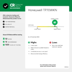 Honeywell TP70PWKN 50 Pint (70 Pint 2019 DOE Standard) Energy Star Dehumidifier With Pump, White