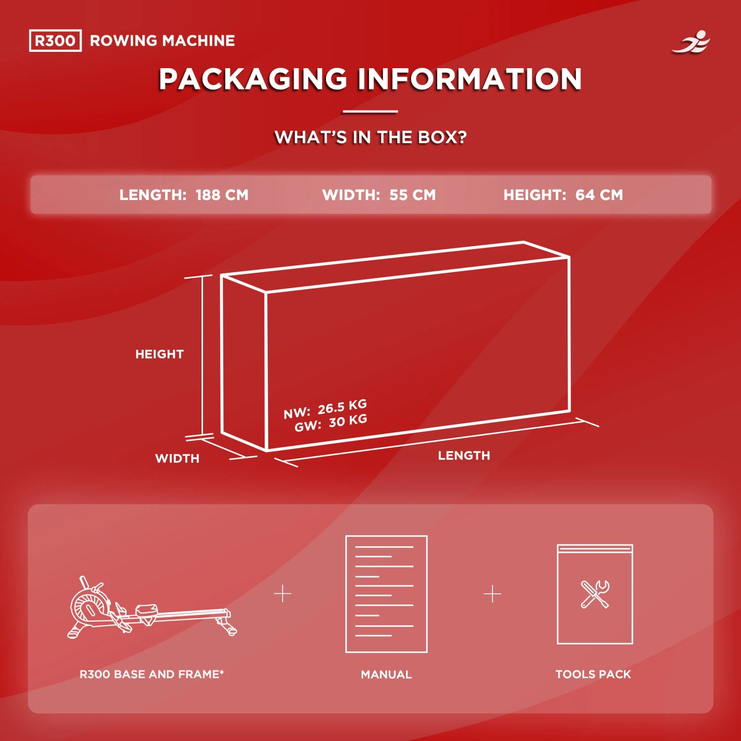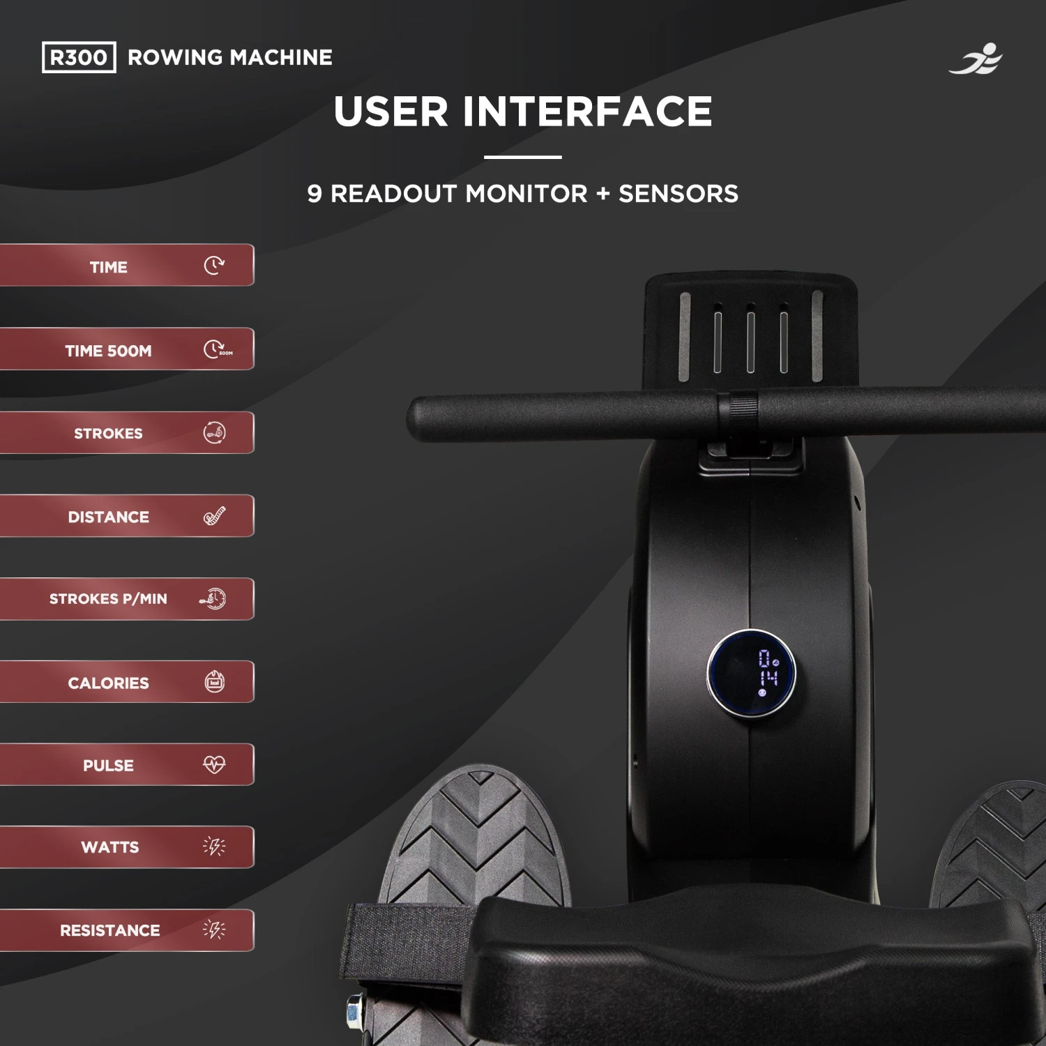Featuring 8 monitor readouts, including time, distance, strokes, calories burned, and more, the R300 keeps you informed and motivated throughout your workout. With Bluetooth connectivity, seamlessly sync your rowing data with your favourite fitness apps for comprehensive tracking and analysis, empowering you to optimise your training regimen like never before.