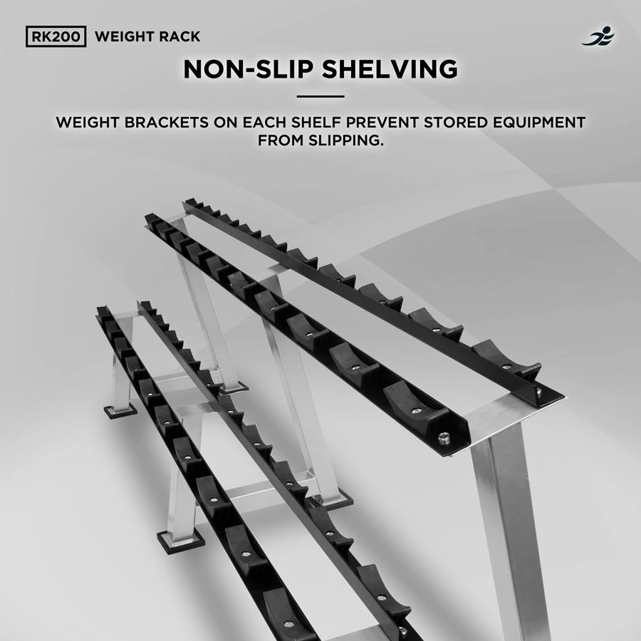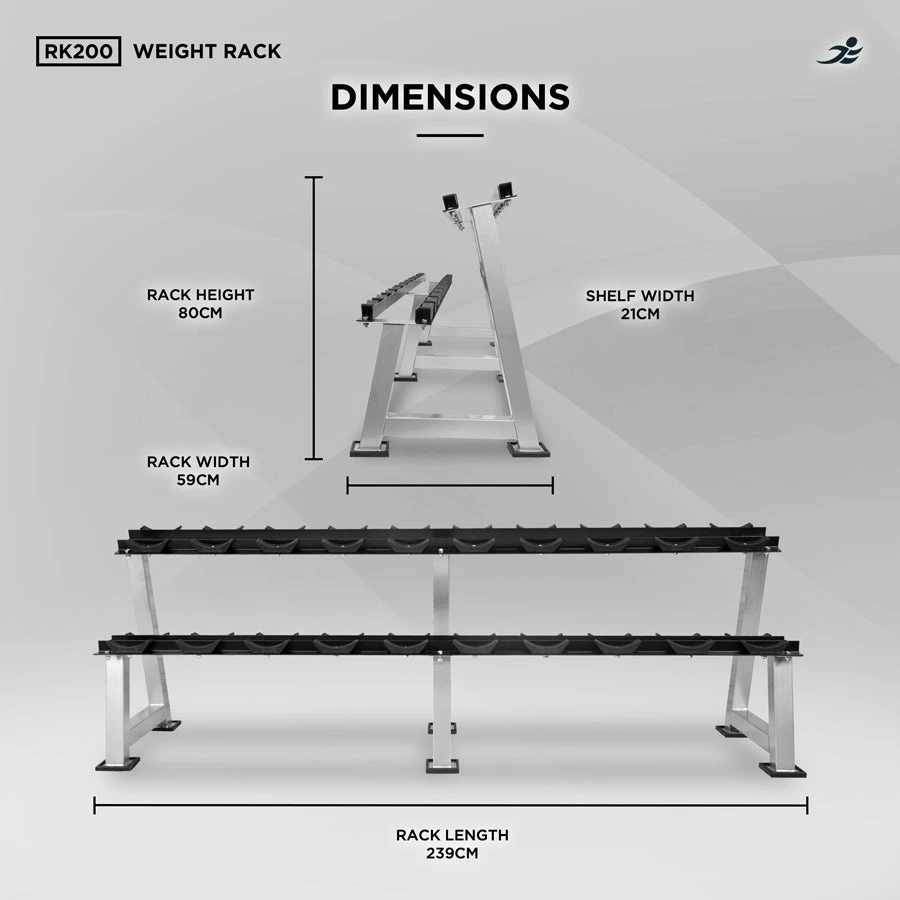 Designed to house a multitude of dumbbells, this rack is designed for both domestic and commercial use, making it the perfect addition to any gym. A sleek finish and the available space for ten pairs of dumbbells provide a safe and stable place to store your weight equipment. This stand also has plastic caps added to the bottom of each leg meaning it is less likely to slip, dent or mark flooring.