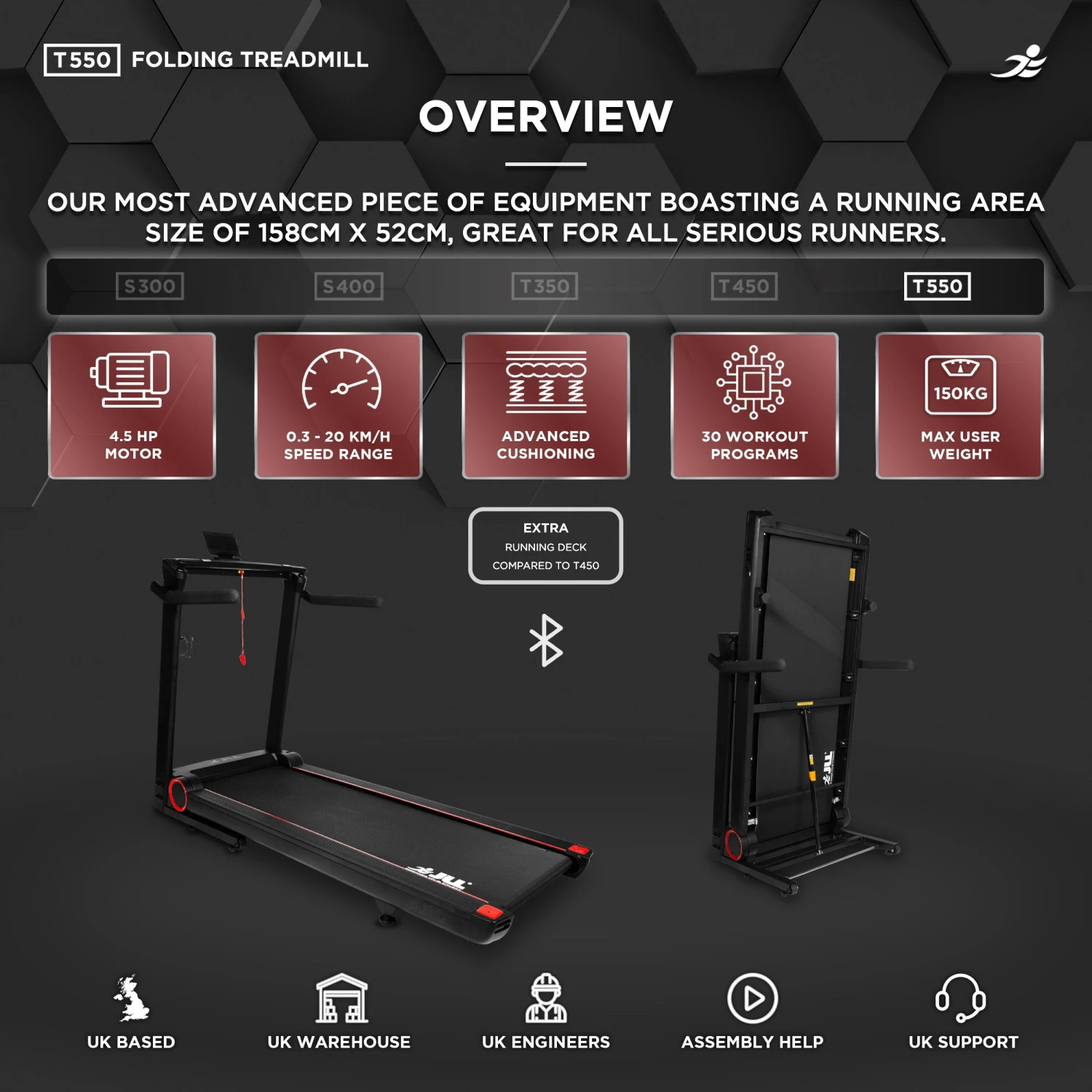 The JLL Fitness T550 Treadmill is the pinnacle of home workout equipment, representing the most advanced model in the JLL line-up. It is designed to deliver unparalleled performance, comfort, and innovation for users who demand the best.