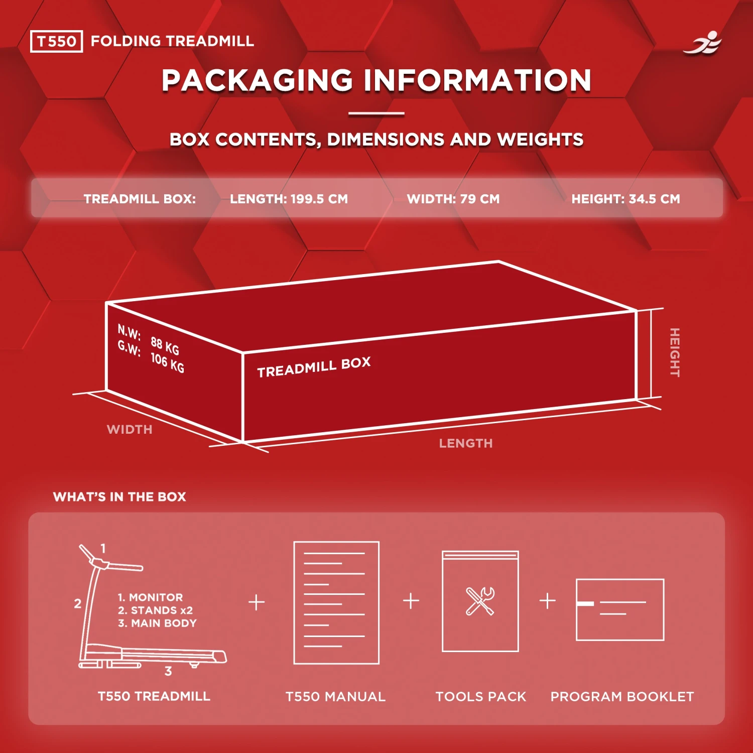 Versatile Incline Options: Featuring 20 levels of incline, the T550 allows you to intensify your workouts by simulating various terrains, adding an extra challenge and variety to your exercise routine.