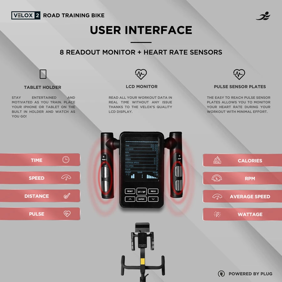 Advanced Electro-Magnetic Resistance: The Velox 2 features an advanced electro-magnetic resistance system, providing a smooth, silent, and highly responsive ride. Easily adjust the resistance to simulate different terrains and intensities, allowing for a versatile and challenging workout that can be tailored to your fitness goals.