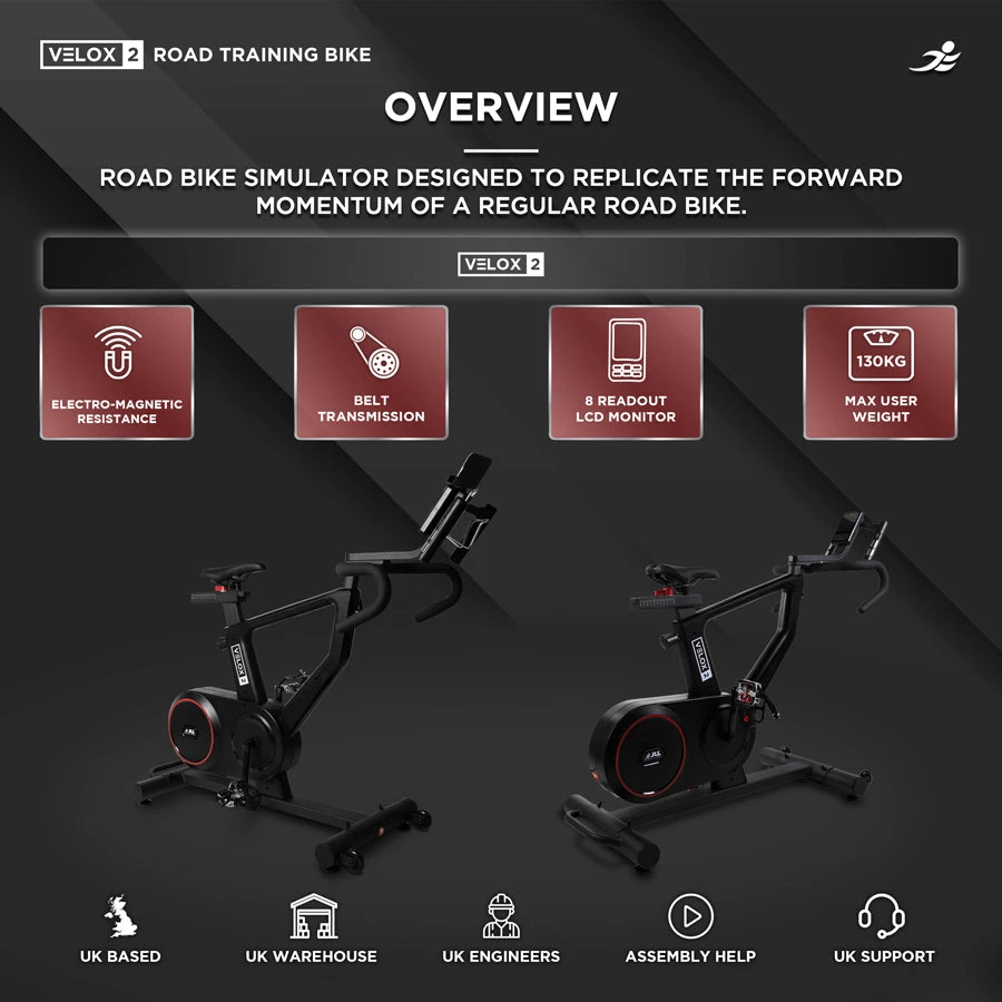 Elevate your cycling performance with the JLL Velox 2 Road Training Bike, the pinnacle of high-end home workout equipment. Designed for serious cyclists and fitness enthusiasts, the Velox 2 combines state-of-the-art features with exceptional build quality to deliver an unmatched training experience.