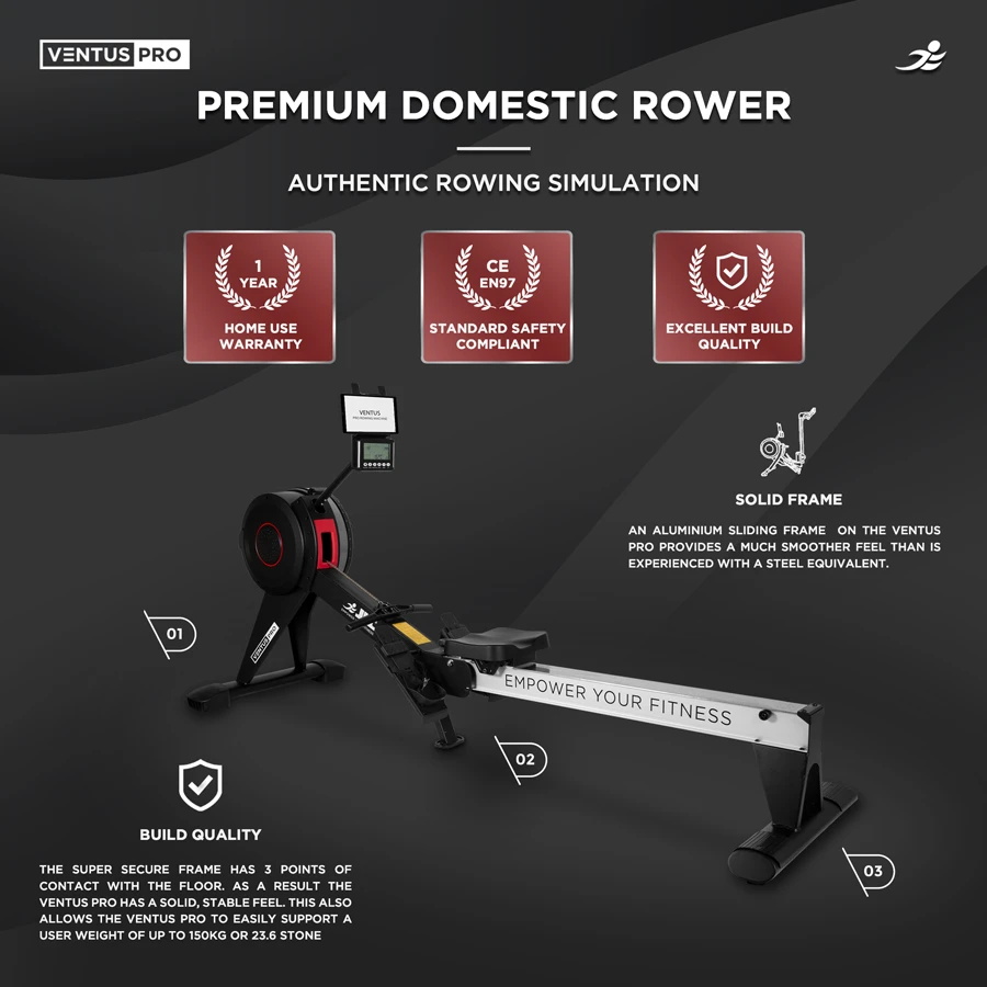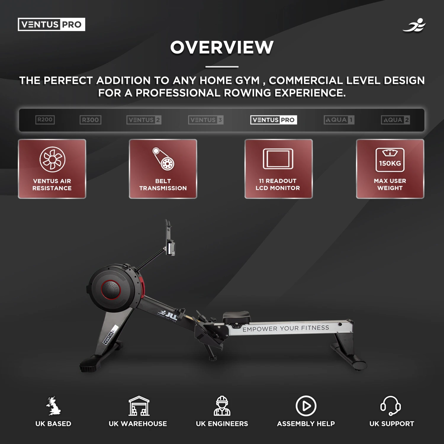 Elevate your home fitness routine with the JLL Ventus Pro Rowing Machine, combining advanced technology, durability, and convenience. Experience the powerful air resistance, comprehensive monitoring, and robust design that make the Ventus Pro the preferred choice for achieving peak physical fitness at home.